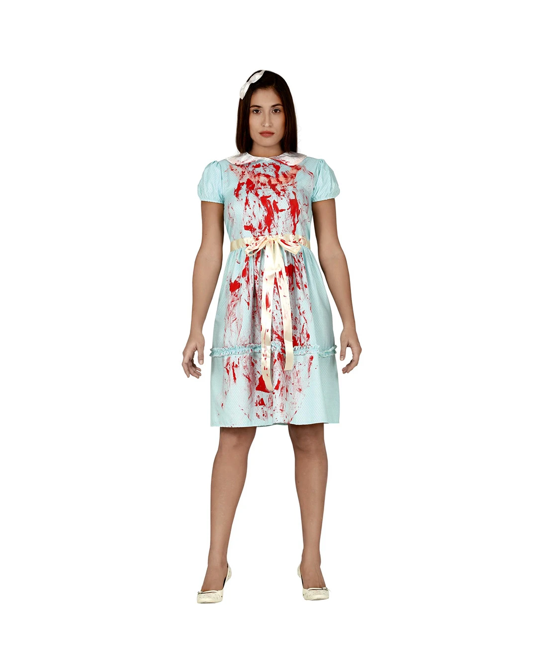 Das Bloody Twinnie Damen Kostüm ist ein kurzes Halloween Kleid für Frauen. Das hellblaue Kostüm verfügt über einen weißen Ziergürtel und ist mit Blutspritzern designt. Du erhältst das Horrorkostüm in Größe M & L. Noch mehr blutige Halloween Kostüme für Damen und Herren bekommst du in unserem Onlineshop. Entdecke auch das Dämon Puppe Make-up Kit oder die Greta Perücke