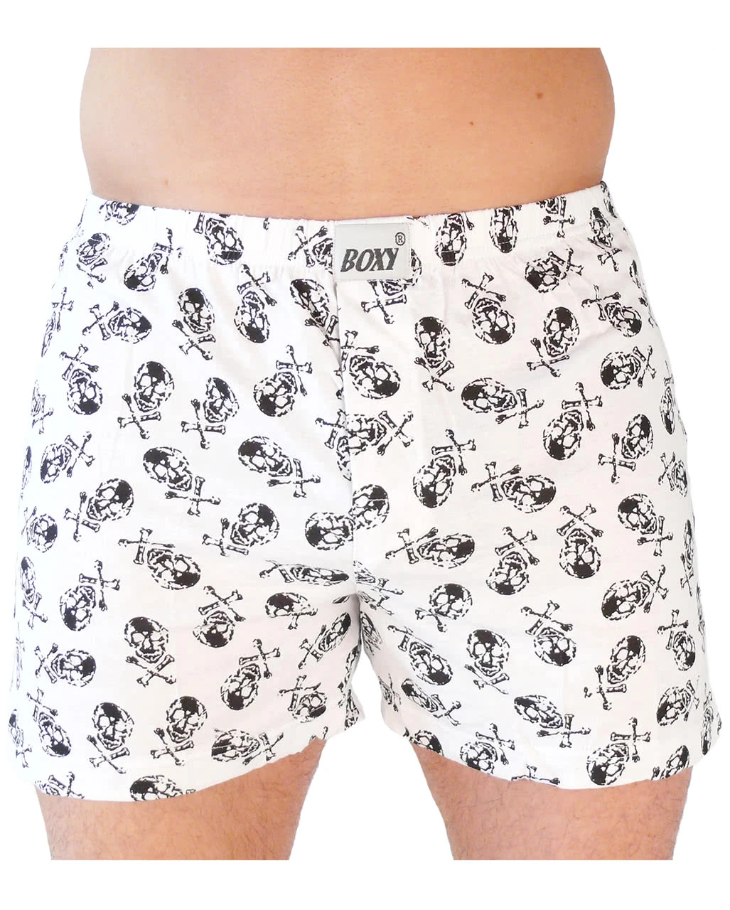 Ob für Grufties, Piraten sowie für Heavy Metal Anhänger – die weiße Boxershorts mit Totenköpfen ist für alle Fans der schwarzen Szene eine geniale Unterwäsche wie auch Geschenkidee. Die bequeme Totenschädel Unterhose Boxy wird die Frauen beim auspacken begeistern!