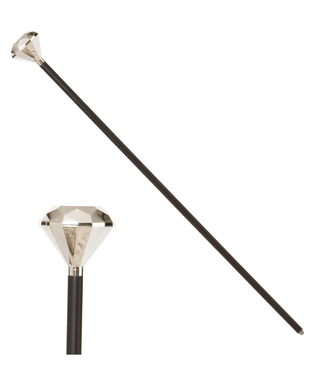 Der Gehstock Diamant ist ein erstklassiges Accessoire für verschiedene Kostümierungen. Der silber-glänzende diamantförmige Knauf verleiht dem circa 89 cm langen Gehstock ein edles Aussehen. Dies macht ihn zum passenden Begleiter bei einem Damenfrack schwarz und Vampir Baron Kostüm ML für die nächste Halloween Party.