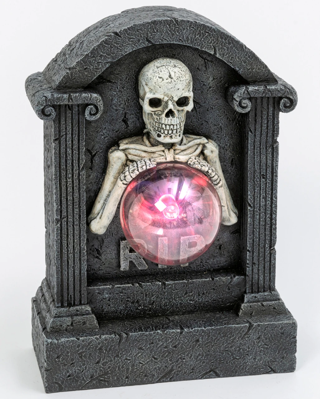 Friedhof Grabstein aus Kunststein mit Plasma-Kugel für Halloween