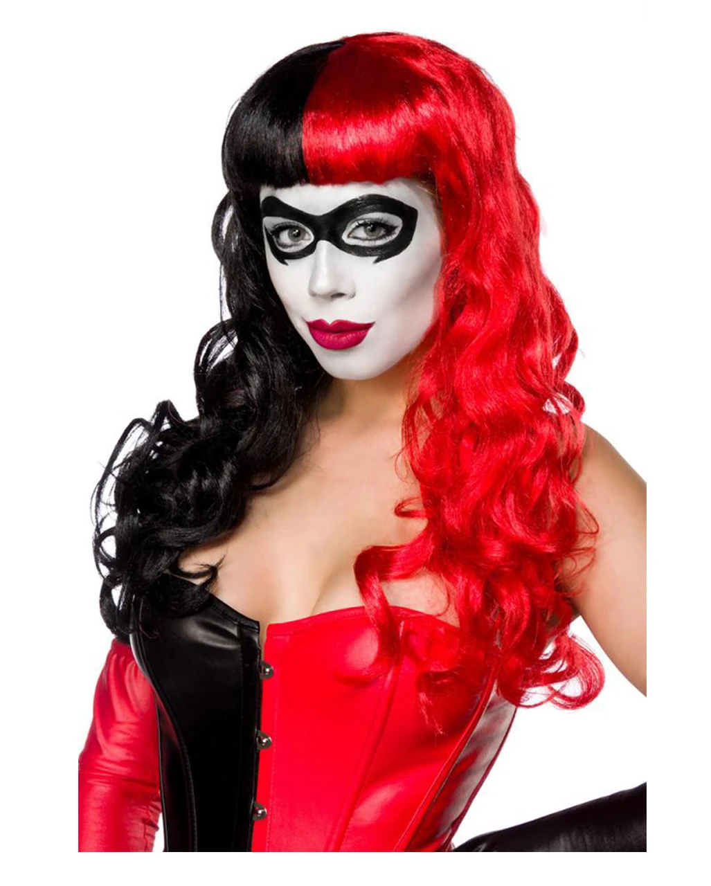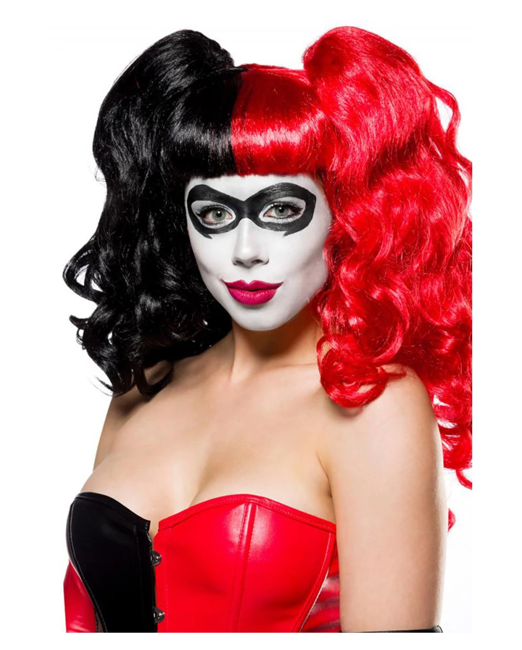 Grandiose Harlequin Perücke mit Zopfklammern um sich schnell die verschiedensten Frisuren zu zaubern. Die vielseitig einsetzbare Langhaarperücke mit Locken lässt sich für verschiedenste Charaktere benutzen. Ganz gleich, ob du als Harlequin, Gothic Girl oder Teufelin auftreten willst, unsere wandelbare Cosplay Perücke hilft dir dabei, die richtige Frisur zu tragen.