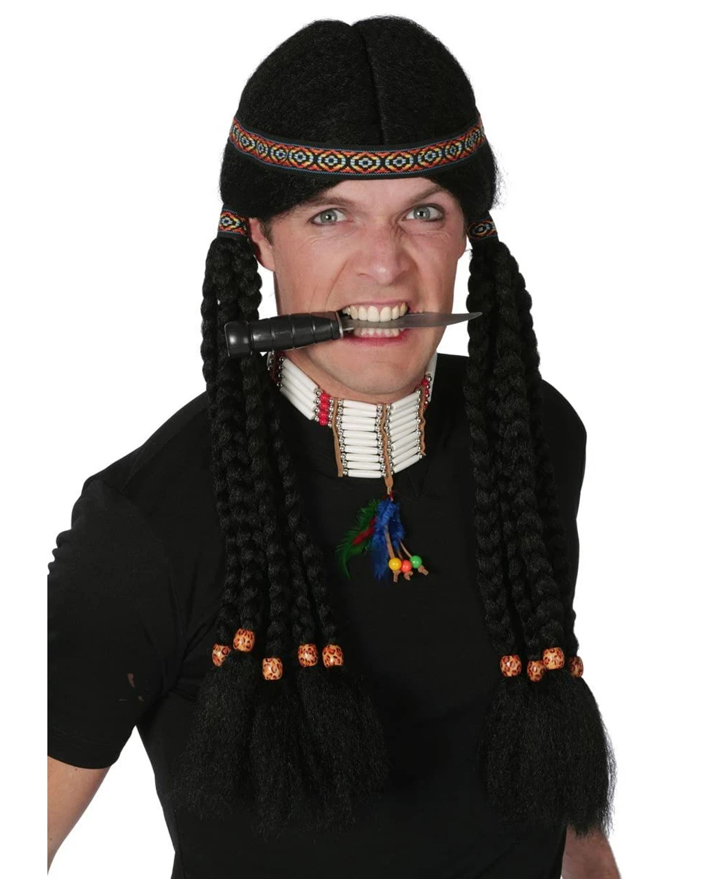 Indianer Perücke mit geflochtenen Zöpfen & Stirnband