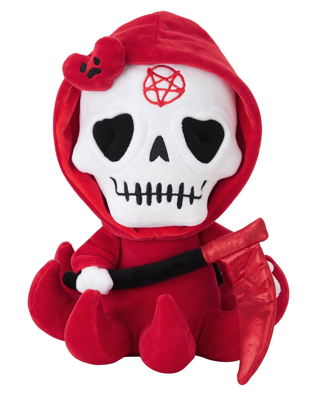 Knallrotes Gothic Kuscheltier in Geister Gestalt mit Sense
