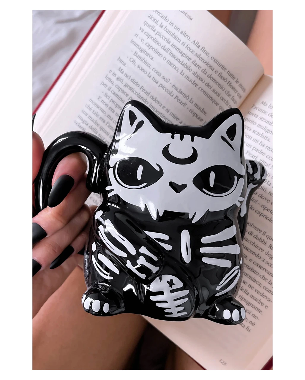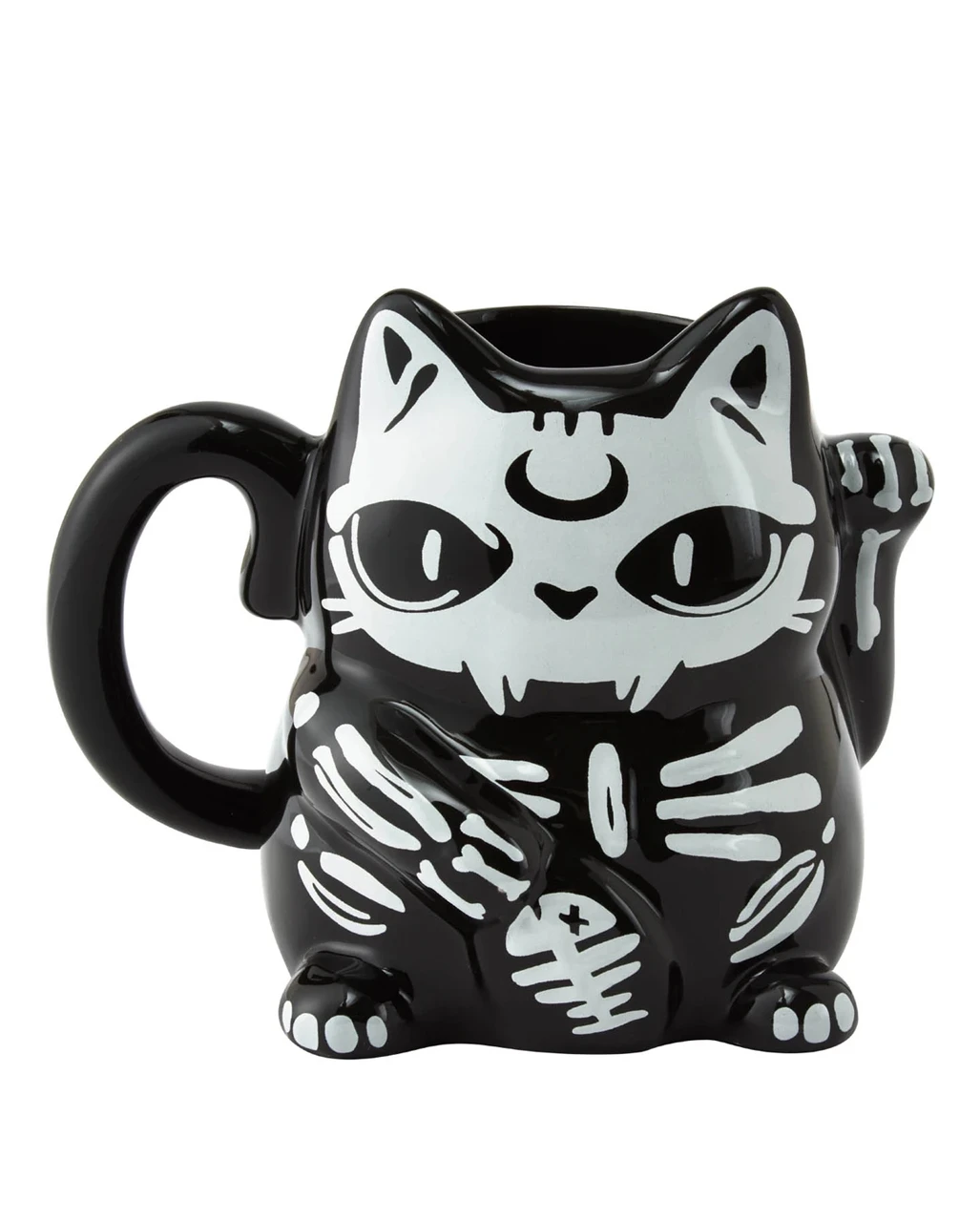 Skelettierte Winke Katze als Gothic Lieblingstasse