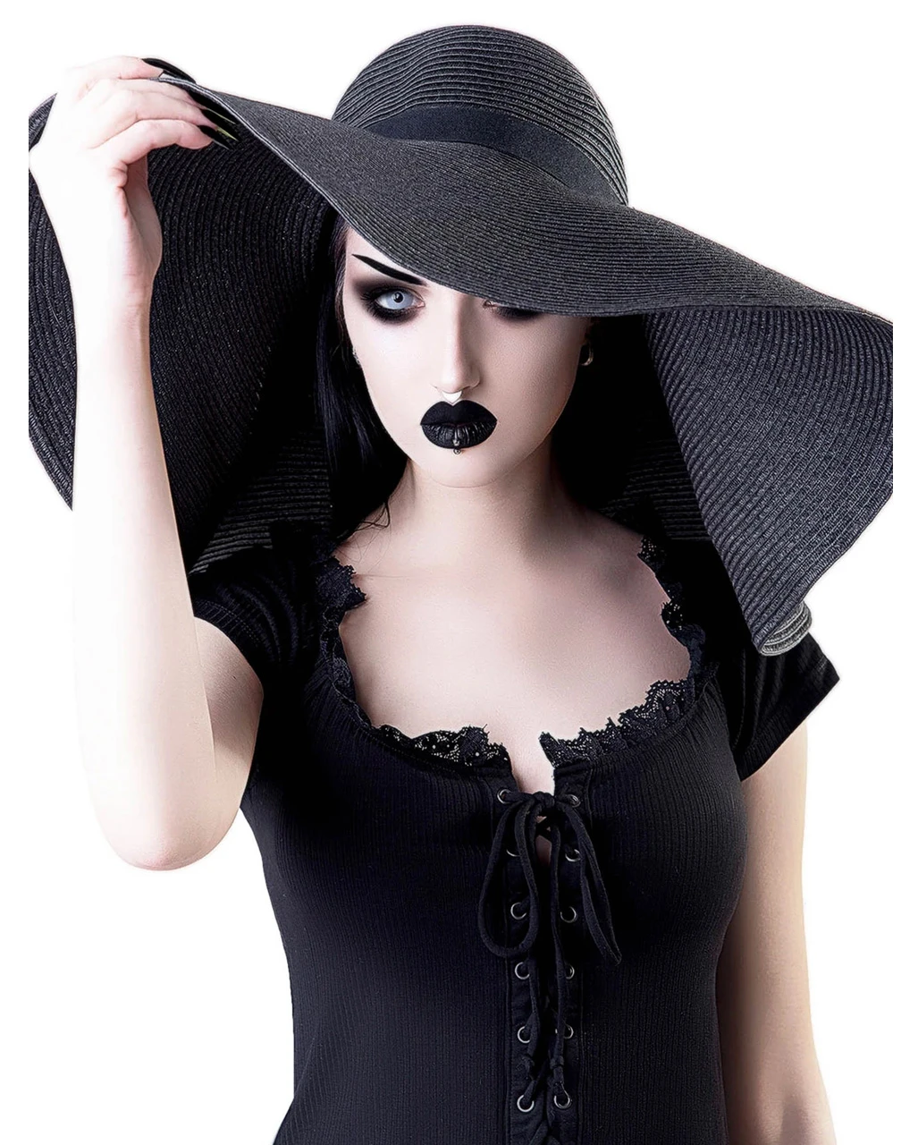 Schwarzer Gothic Sun Hat mit großer Hutkrempe