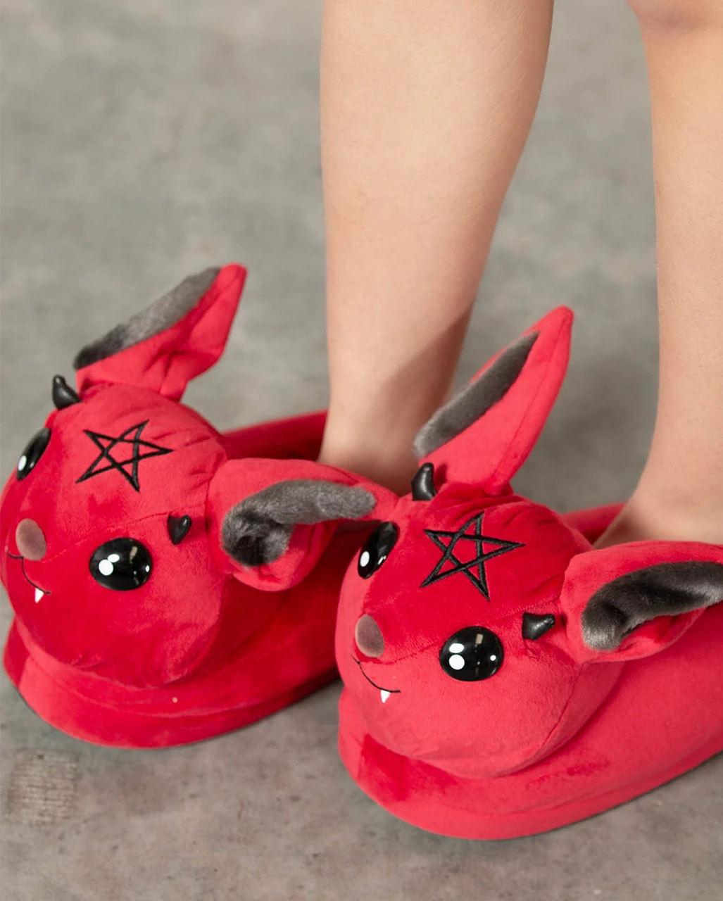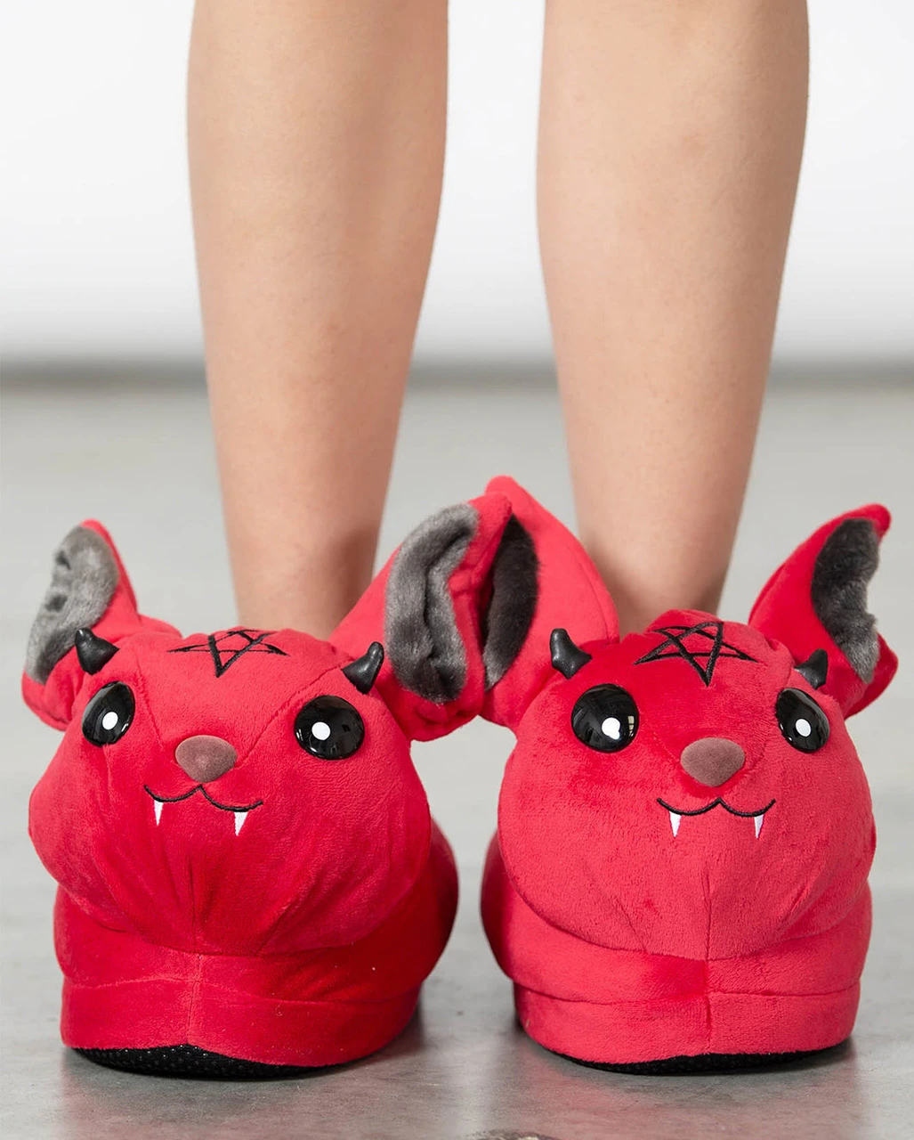 Auch als Gothic Geschenkartikel eine tolle Idee: Die KILLSTAR Vampir Hausschuhe sind in zwei verschiedenen Größen erhältlich. Sie sind blutrot und zeigen als Design zwei niedliche Fledermaus Köpfe aus Plüsch. Kleine Ohren, winzige schwarze Hörner und große runde Augen machen die Persönlichkeit dieser ganz besonderen Fußwärmer aus. Noch mehr Gothic Fashion und kuschelig weiches Zubehör findet ihr hier im Shop.