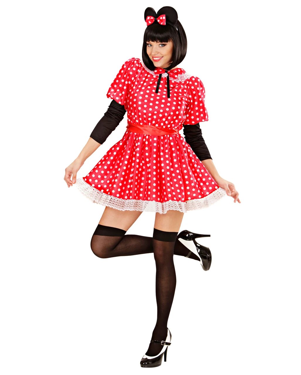 Im Lieferumfang enthalten: Polkadot Kleid, Mauseohren Haarreif und roter Stoffgürtel