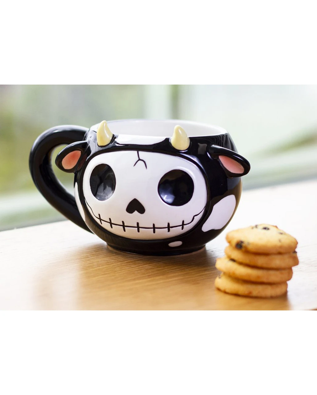 - Putzige Furrybones Skelett Keramiktasse mit Kuhmotiv