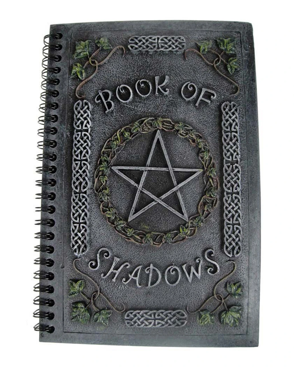 Das Pentagram Notizbuch mit Efeu ist ca 22 cm groß und mit Kunststein Klappdeckel gearbeitet. Der Spiralbund ist aus Metall, die Seiten sind aus Papier und lassen sich von dir befüllen. Dieses Buch mit okkulten Symbolen ist etwas ganz Außergewöhnliches und kommt als Geschenk super an! Entdecke auch unser Ouija Board Notizbuch A5