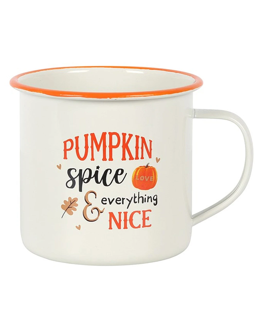 Herbst und Halloween ist Kürbisgewürz-Saison! Mache es dir jetzt mit unserem Pumpkin Spice Emaille Becher gemütlich und genieße deinen Tee. Wenn es draußen stürmt und das Herbstlaub umherfliegt, wenn Michael Myers das Messer wetzt und die Zombies in ihren Gräbern unruhig werden, dann ziehst du dich mit dieser wunderschönen herbstlichen Tasse als Halloween Homeware in deine Gruft zurück und verschließt die Tür. Happy Halloween!