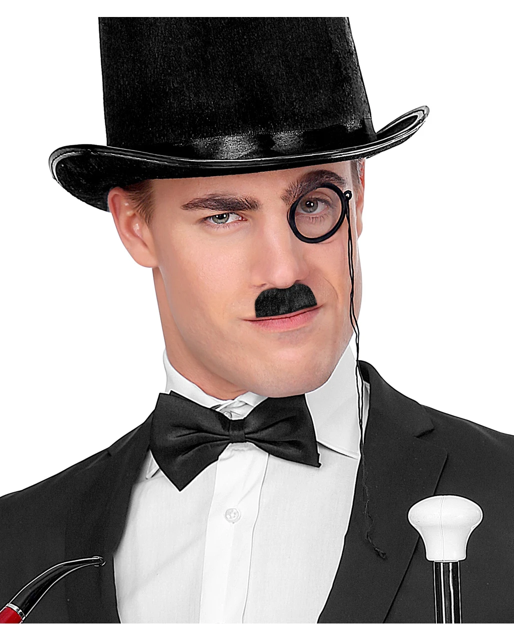 Ob täuschend echte Chaplin-Impro, oder die Grundlage für einen stylischen Vagabunden – der Schnurrbart Charlie wird Dich nicht enttäuschen. Sieh Dir dazu auch unseren Spazierstock Charlie oder Schwarze Satin Melone Charlie an!