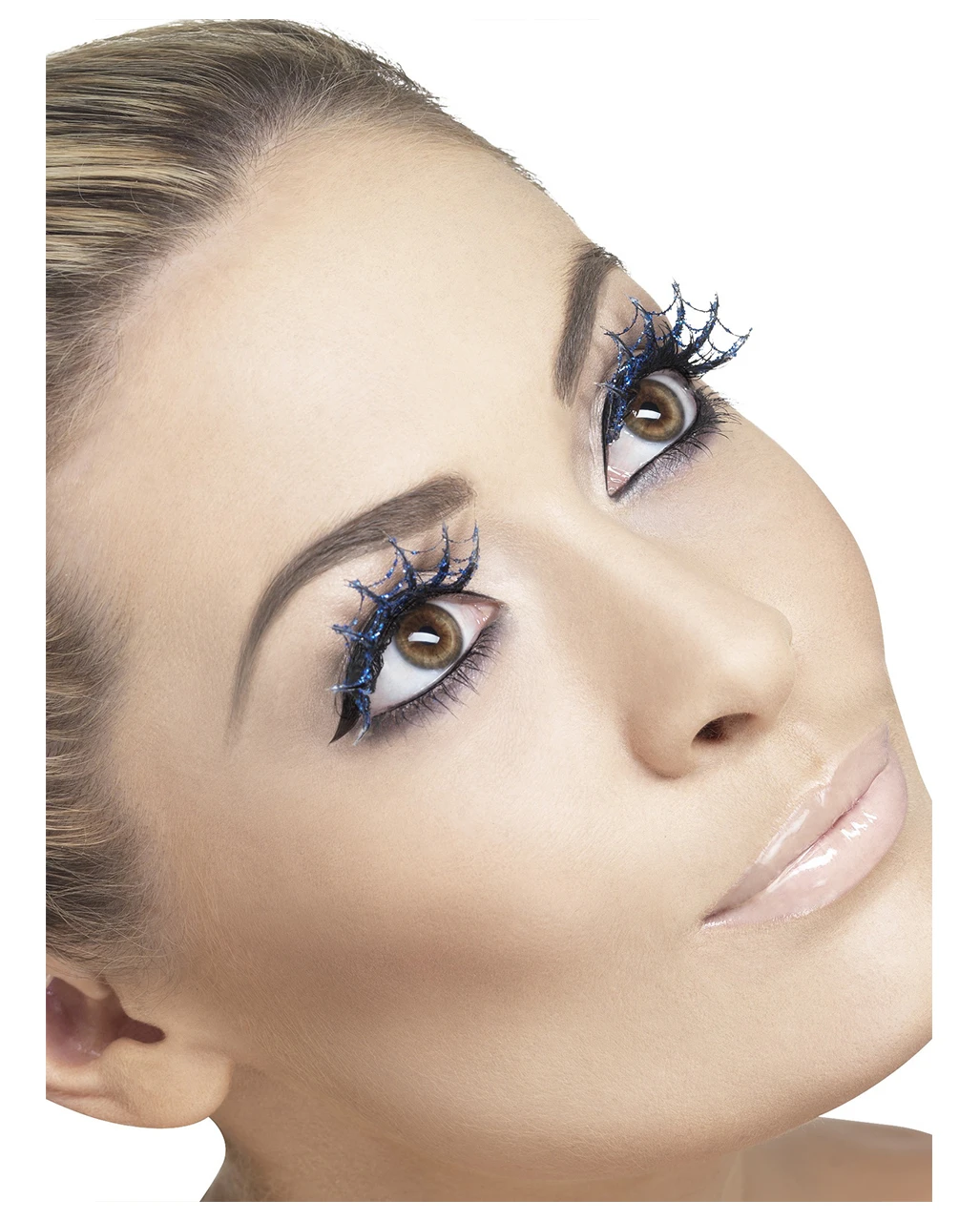 Die glitzernden Spinnwebenwimpern sind das perfekte Highlight für jedes Halloween Make-up. Durch ihr Spinnweben Design lassen sich diese künstlichen Wimpern super zu Hexen, Vampir oder Spinnenköniginnen Kostümen kombinieren.