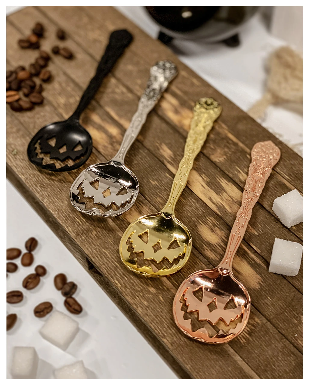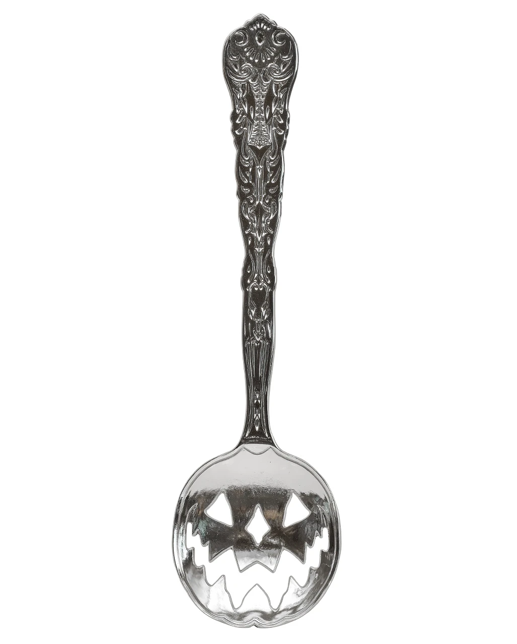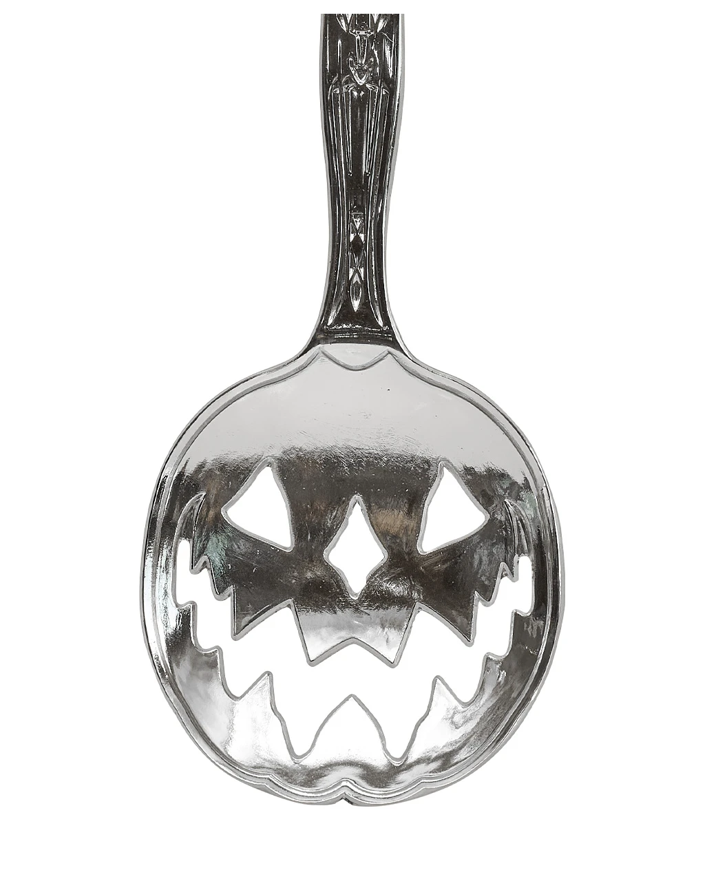 Schaurig-schöner Teelöffel aus Metall mit grinsendem Kürbisgesicht