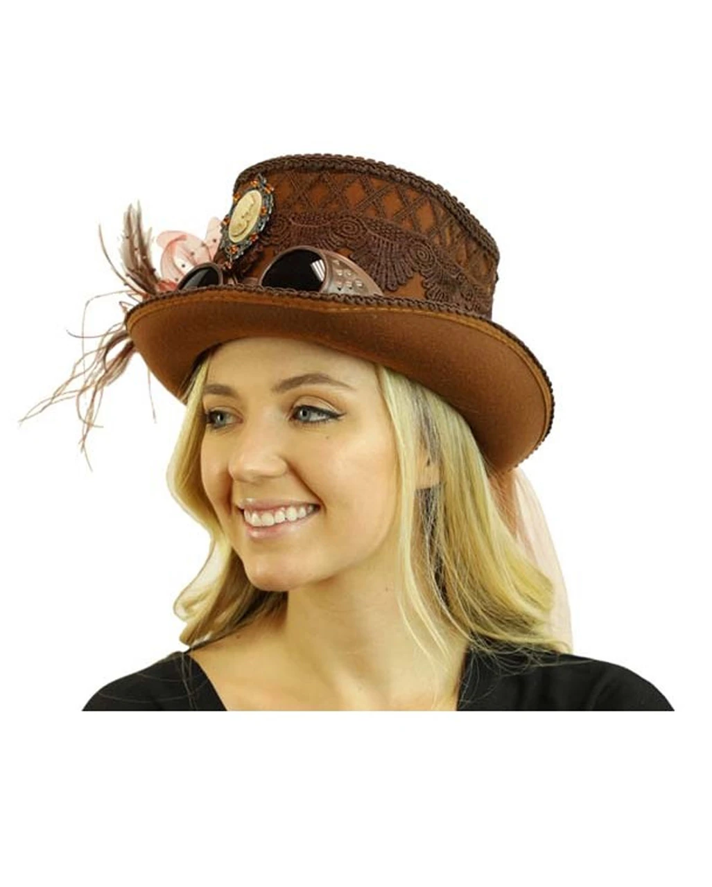 - Eleganter Steampunk Damenhut mit Schweißerbrille & Brosche