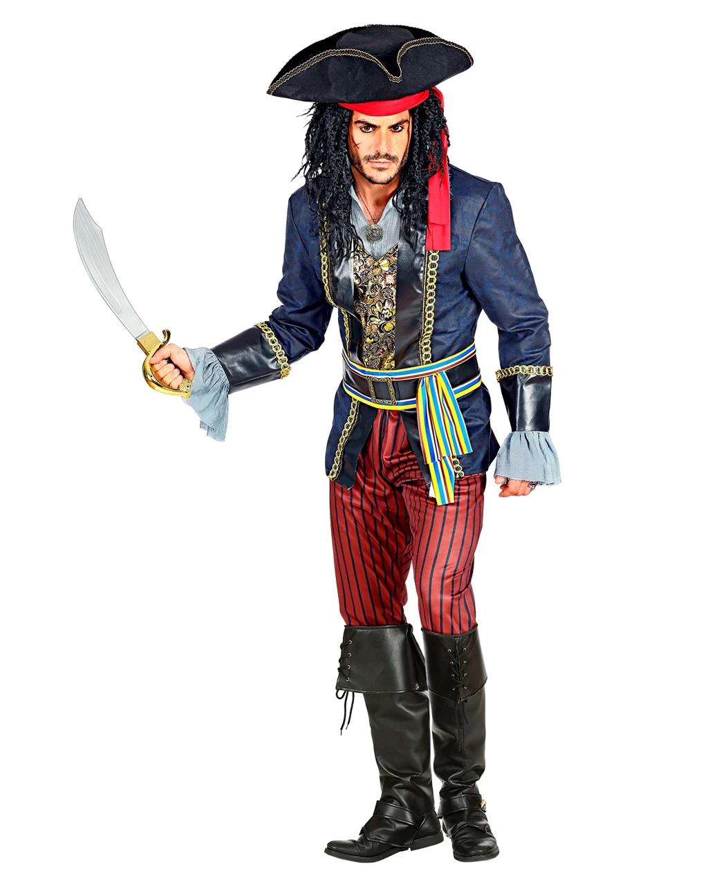 Die Piraten Stiefelstulpen in Lederoptik sind aus dunklem Kunstleder und lassen sich auch zu einem Musketier oder Zorro Outfit kombinieren. Diese lassen sich ganz einfach überziehen und halten am Fuß mit einem schwarzen Stretchband. Die Gamaschen sind oben einmal umgekrempelt und mit Schnürung versehen, sodass die Optik eines richtigen Stiefels entsteht. Mit dem Musketier Kostüm und dem Blackhawk Piraten Schwert lang 70cm entsteht ein super Freibeuter Kostüm.