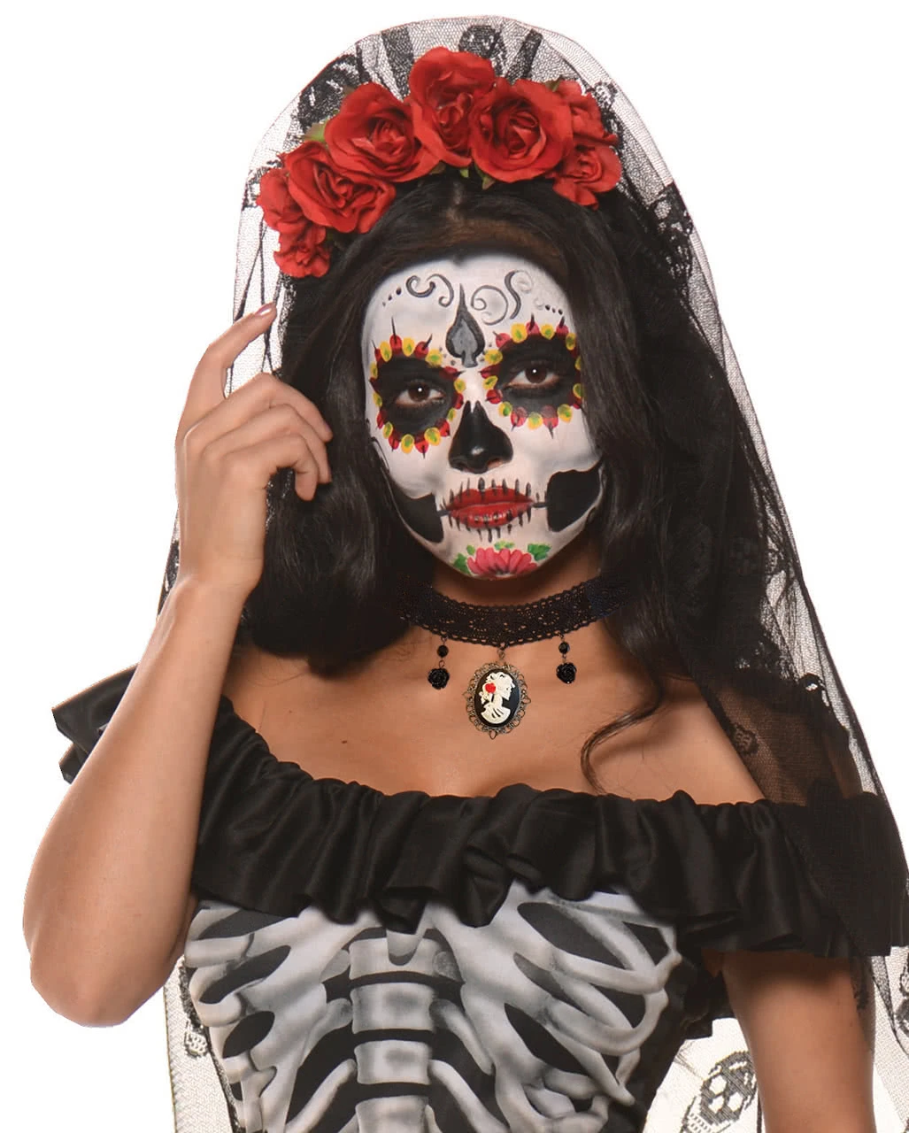 Lieferumfang: 1x Tag der Toten Halsband mit Cameo
