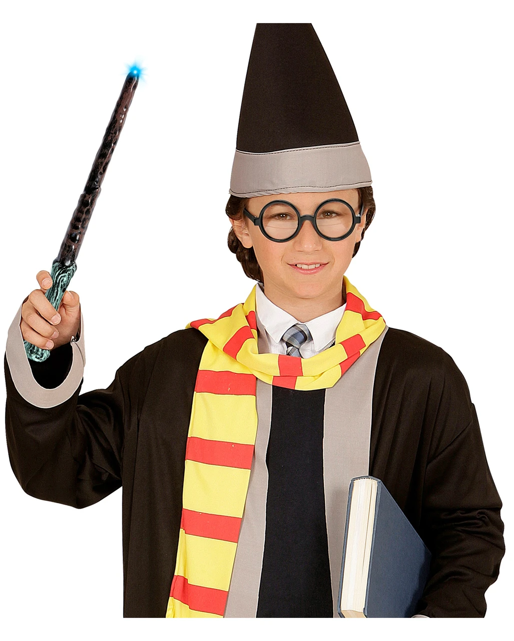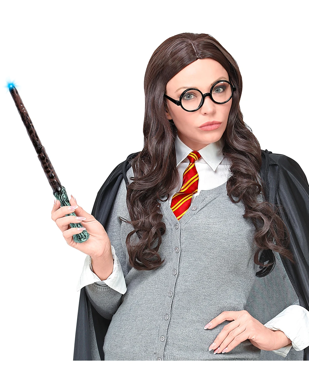 Der tönende & leuchtende Zauberstab ist ein stimmungsvolles Zauber Kostümzubehör und hat eine Länge von 36 cm, ist im Holzdesign gehalten und am Griff etwas dicker. An der Spitze dieses Faschingszubehörs befindet sich eine LED die auf Knopfdruck blau aufleuchtet, gleichzeitig ertönt eine magischer Klang. Besonders gut lässt sich das Magier Myrddin Premium Kostüm und die Harry Potter Brille dazu kombinieren.