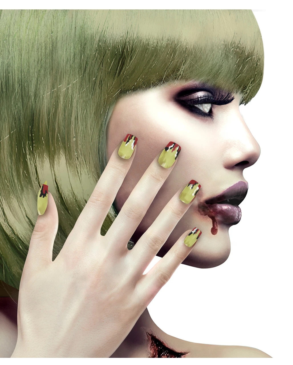 Künstliche, selbstklebende Fingernägel im Zombie Look als Kostümzubehör